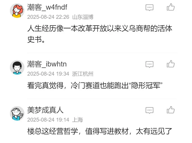 報(bào)道在《潮新聞》客戶端發(fā)布后,眾多讀者在第一時(shí)間就紛紛留言,點(diǎn)贊采訪中體現(xiàn)的充滿韌性、持續(xù)創(chuàng)新的浙商精神與穿越周期的商業(yè)智慧。