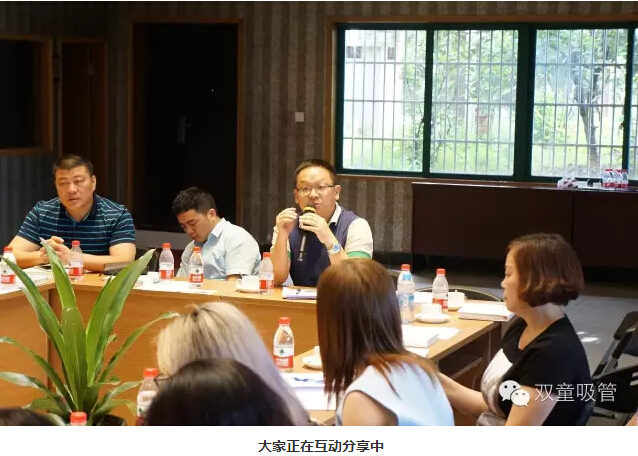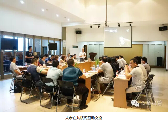 剛到“雙童”,大家就來(lái)到九樓閣進(jìn)行交流分享,二當(dāng)家李二橋圍繞“雙童”的發(fā)展歷程和經(jīng)營(yíng)理念進(jìn)行分享,在聽了“雙童”的發(fā)展歷程后,大家紛紛敬佩“雙童”22年專注一根吸管的精神。