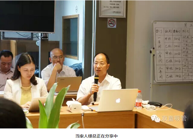 參觀后,大家再次來(lái)到九樓閣,與當(dāng)家人樓總進(jìn)行深入交流,互動(dòng)提問。首先,當(dāng)家人樓總向大家闡述了他經(jīng)營(yíng)”雙童“二十多年所積累下來(lái)的寶貴經(jīng)驗(yàn)心得,向大家講述了”雙童“由初心、恒心、平常心組成的”匠人之心“。