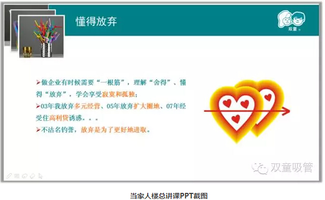這樣一位企業(yè)主,在外界看來(lái),有些“一根筋”和“不通人情”,但在經(jīng)營(yíng)“雙童”二十多年的時(shí)間里,他不沽名釣譽(yù),不貪大求全,懂得了放棄,學(xué)會(huì)了享受寂寞和孤獨(dú),并把“雙童”做到了全球吸管行業(yè)領(lǐng)導(dǎo)者!