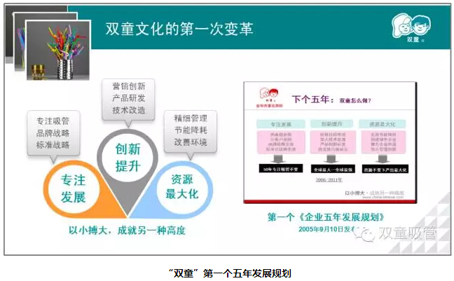 為了讓“雙童”更加堅守實業(yè),2005年“雙童”出臺了第一個五年發(fā)展規(guī)劃,其中就提到了專注發(fā)展,不是立下雄心壯志,而是“做減法”;2011年又出臺了第二個五年發(fā)展規(guī)劃,通過產(chǎn)品創(chuàng)新、團隊再造、體制改革三個方面進行發(fā)展。