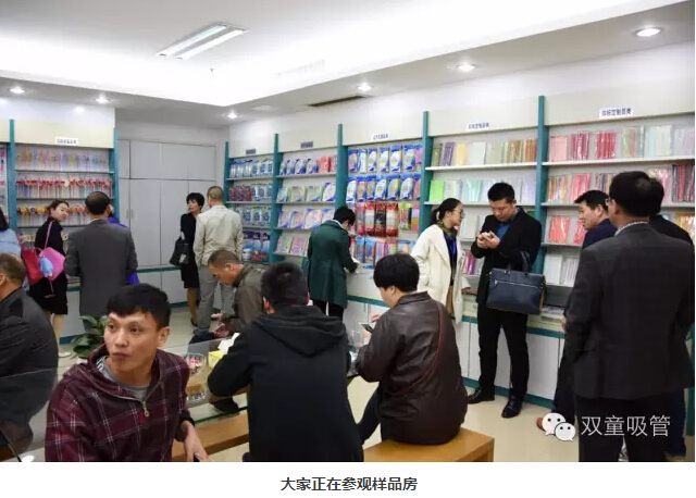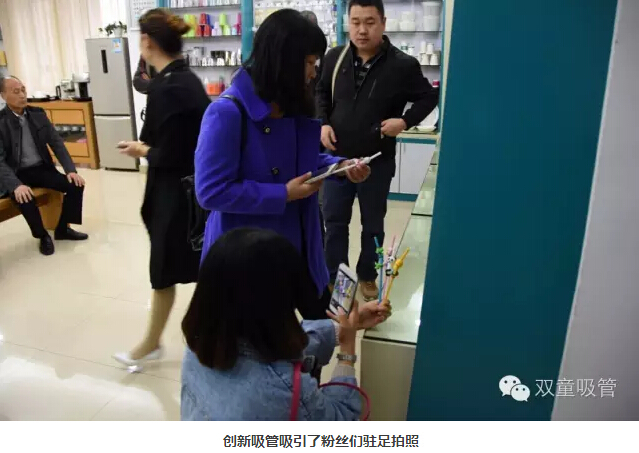 粉絲們都說(shuō)平時(shí)經(jīng)常在微信、微博等平臺(tái)上看到“雙童”,今天到了現(xiàn)場(chǎng)可得好好逛逛呀!說(shuō)走就走,妞帶大家參觀起了我們的花園式工廠!首先,大家來(lái)到了我們的樣品房,看到如此新穎的吸管,大家紛紛拿著手機(jī)相機(jī)對(duì)它們進(jìn)行聚焦攝影!妞也向大家介紹了一系列創(chuàng)新吸管,讓他們驚訝的是,原來(lái)一根小小的吸管也可以有這么多的功能可以開(kāi)發(fā)!