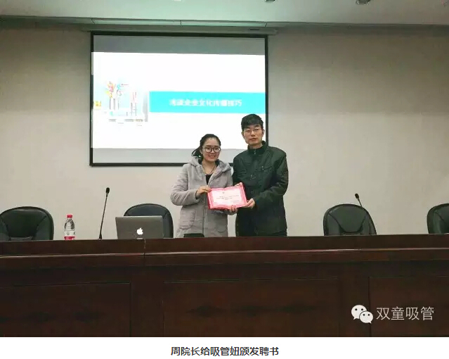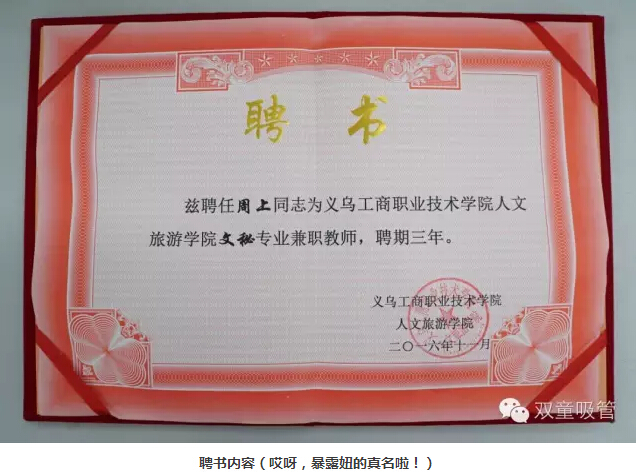 分享會的一開場,就給了妞一個大大的驚喜!在主持人簡單的開場介紹之后,周院長還給吸管妞頒發(fā)了文秘專業(yè)兼職教師聘書呢!沒想到妞也當上老師啦!妞在受寵若驚的同時也暗下決心,一定會更加認真對待自身工作,積累更多的經(jīng)驗,日后能幫助到我們的文秘同學們!