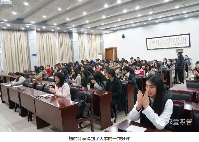 11月25日下午,吸管妞受邀前往義烏工商學院,與200多位文秘專業(yè)的師生們分享了《淺談企業(yè)文化傳播技巧》課程。為什么會請吸管妞去分享呢?在這之前,人文旅游分院的周院長和尹老師特地帶著三個班的100多位學生來“雙童”參觀,學習“雙童”的企業(yè)文化與傳播工作!周院長認為“雙童”的做法非常值得同學們借鑒,才邀請了吸管妞前去和同學們分享呢!