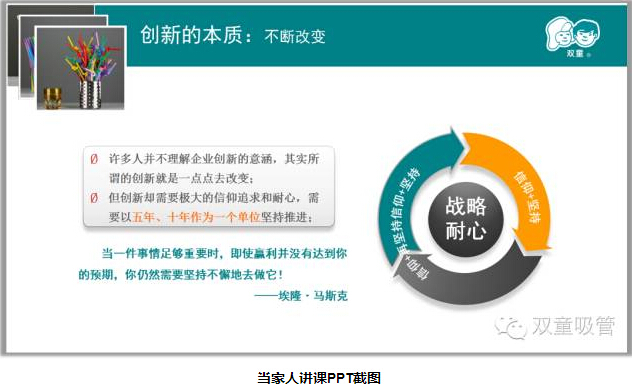 “企業(yè)要追求有效創(chuàng)新。”樓仲平說(shuō),“雙童”不需要用機(jī)器人做吸管,“雙童”只需要保持高度的個(gè)性化、高度的差異化,產(chǎn)品就能有競(jìng)爭(zhēng)力。