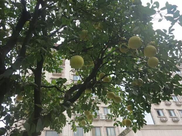 已經(jīng)轉(zhuǎn)黃的大柚子高高低低的掛滿了枝頭,和青綠的葉子應(yīng)和著,煞是好看呢!從樹下往上看,像不像星星掛滿天的趕腳?吸管妞還發(fā)現(xiàn),有幾個(gè)柚子長(zhǎng)得非常的低,真的可以用“唾手可得”來(lái)形容,可是……竟然沒有吃貨來(lái)摘?這是怎么回事呢?