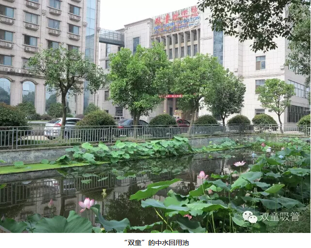 2003年,“雙童”在建設(shè)雨水收集系統(tǒng)的同時(shí)著力于消滅污染和降低排放,又建設(shè)了廢水收集處理及中水回用系統(tǒng),將所有的廢水進(jìn)行集中處理,并儲(chǔ)存?zhèn)溆?。處理好的中水通過(guò)專用管道供應(yīng)給所有員工寢室衛(wèi)生間內(nèi)的抽水馬桶、屋頂綠化、綠化噴淋和道路清洗。