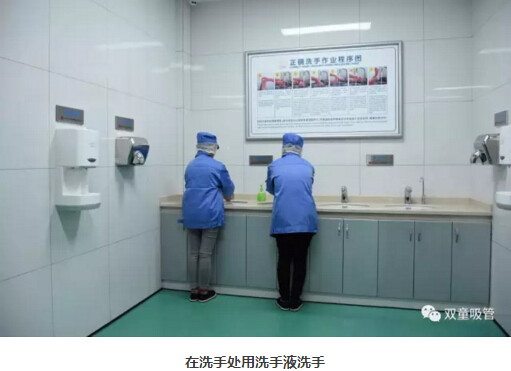4、整理完衣物后,來到洗手消毒間,進行洗手、烘干、消毒。