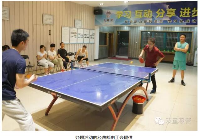 “雙童”建立了專門工會活動場所,由專人進(jìn)行管理和服務(wù),內(nèi)有圖書閱覽室、體育活動室、燒烤吧臺等等,公司每天免費(fèi)開放職工活動室和多功能廳,員工可以打乒乓球、看電視、唱卡拉OK、跳舞、上網(wǎng)、看雜志報(bào)紙,是員工在勞動之余很好的休閑去處。