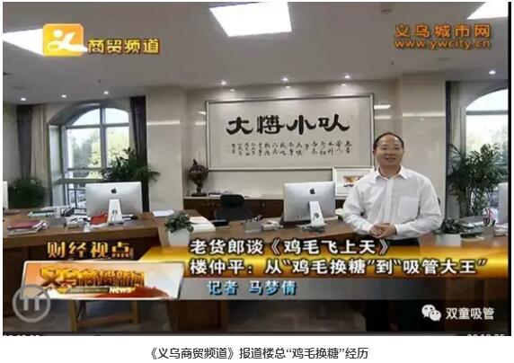 其實(shí)在《雞毛飛上天》開(kāi)播之前,義烏電視臺(tái)記者就特地來(lái)到“雙童”,采訪當(dāng)家人樓總“雞毛換糖”的創(chuàng)業(yè)經(jīng)歷。從“雞毛換糖”的小商販到白手起家創(chuàng)辦“雙童”,樓總敢闖敢拼的創(chuàng)業(yè)經(jīng)歷其實(shí)和《雞毛飛上天》中所展現(xiàn)的浙商形象不謀而合。昨晚,義烏電視臺(tái)就播出了樓總的報(bào)道,下面妞就放上視頻讓大家一睹為快吧!