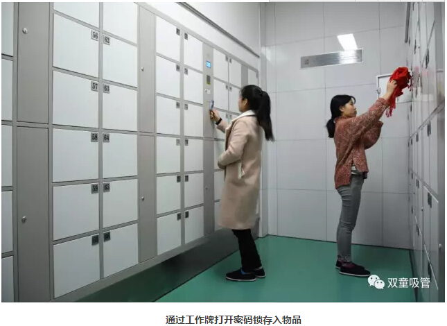 2、員工來到第一更衣區(qū),將自己的私人衣物儲存在柜子中。