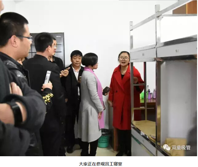 接著,大家來到了員工寢室,在看到房間里的不銹鋼床時(shí),大家都很好奇,妞向大家介紹道:“寢室里的不銹鋼床,都是當(dāng)家人樓總設(shè)計(jì),在建造之初就已經(jīng)焊死在地上,防止員工發(fā)生安全事故的同時(shí),也最大程度保證了寢室的整潔。確保在員工的生活方面做到百分百的便利舒適,讓員工更加放心工作!”同時(shí),房間內(nèi)配置十分齊全,并組建了物業(yè)團(tuán)隊(duì)全方面的為員工進(jìn)行服務(wù)。