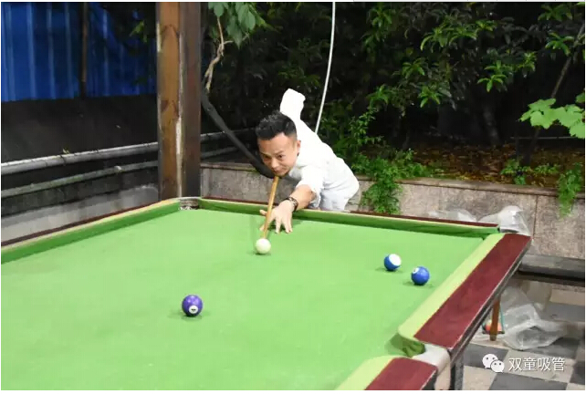 再來看看場(chǎng)上的精彩比拼,俯身微屈,前額下貼,瞄準(zhǔn),推桿,撞球進(jìn)洞…… 參賽選手個(gè)個(gè)集中精力,全力以赴,用球桿和花球?yàn)楝F(xiàn)場(chǎng)觀眾演繹了一場(chǎng)場(chǎng)精彩絕倫的臺(tái)球比賽,引得現(xiàn)在的圍觀群眾連連叫好!