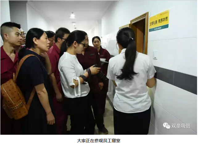 接下來,大家來到了員工餐廳,餐桌上的用餐提示語(yǔ)、墻上的相框、餐桌上的編號(hào)銅牌……隨處可見的優(yōu)質(zhì)細(xì)節(jié)都讓大家稱贊不已!除此之外,員工的餐飲都是三菜一湯的標(biāo)配,員工們使用后的所有碗筷都由食堂阿姨進(jìn)行清洗和消毒。大家在看到如此精細(xì)的就餐環(huán)境和硬件后紛紛表示很羨慕呢!