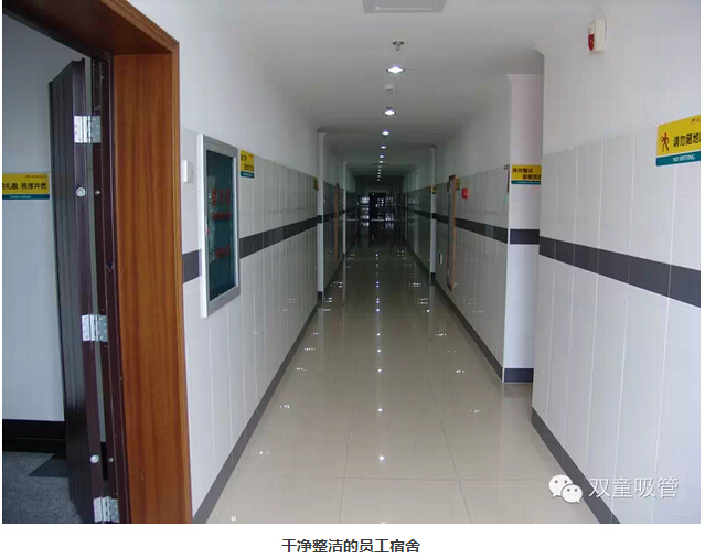 首先吸管妞就從衛(wèi)生保潔工作說起,每天清晨,保潔阿姨就已經(jīng)將員工寢室的通道打掃地干干凈凈了。墻面上的每一塊瓷磚都得用布拖把擦拭干凈,不能留下一點(diǎn)灰塵!