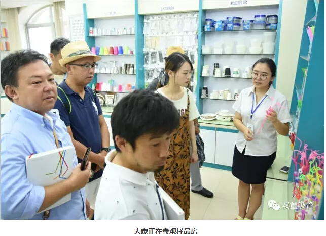 既然到“雙童”參觀,產(chǎn)品自然也是日本客人們重點關(guān)注的方面之一!當他們到樣品房看到“雙童”琳瑯滿目的創(chuàng)新吸管時,都對“雙童”的研發(fā)能力十分驚訝,甚至當即要求購買一些創(chuàng)新產(chǎn)品帶回日本作為紀念。