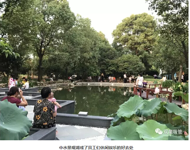 “雙童”人最喜歡駐足停留的便是行政樓前的中水景觀湖了,景觀湖將樹木、花朵、小橋、流水融合在一起,一旁的樹木搖曳風(fēng)姿,湖水在陽光的照耀下顯得格外美麗!