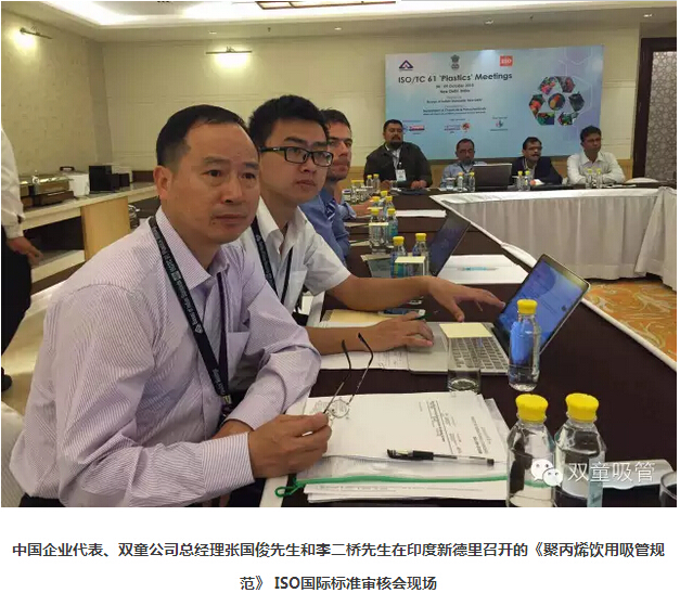 2015年10月,雙童公司代表中國企業(yè)派出了六人代表團(tuán)在印度新德里召開的《聚丙烯飲用吸管規(guī)范》 ISO國際標(biāo)準(zhǔn)審核會(huì)議