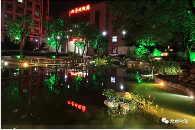 當(dāng)夜幕降臨,走在鑲嵌在地面上的鵝卵石小徑上,掩映在綠樹(shù)成蔭下的路燈也是美麗極了!夜色初上,朦朦朧朧的淡淡燈光,與月色交相輝映,夜幕下的“雙童”也別有一番風(fēng)味!