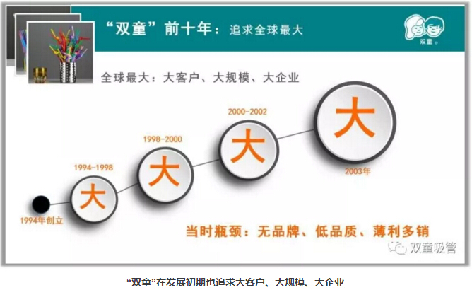 許多人都知道“雙童”有一個(gè)被收錄到清華、浙大等大學(xué)MBA教材的經(jīng)營(yíng)戰(zhàn)略,叫做“小客戶原則”。這個(gè)經(jīng)營(yíng)戰(zhàn)略指導(dǎo)“雙童”走出了企業(yè)“大而不強(qiáng)、薄利多銷”的發(fā)展瓶頸,從而牢牢占據(jù)吸管行業(yè)領(lǐng)導(dǎo)者的地位。那么,這個(gè)戰(zhàn)略是如何提出的呢?