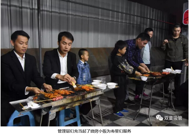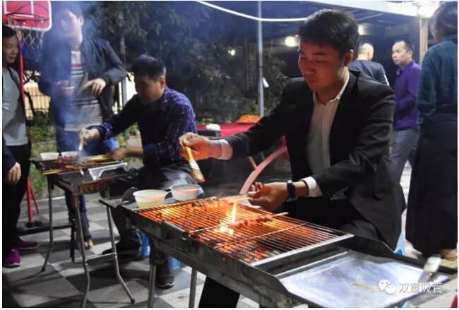 咦?車間管理們也爭(zhēng)當(dāng)起了“燒烤小販”,為壽星們進(jìn)行服務(wù)。員工們喝著美酒吃著主管們烤的肉串,別提多開心啦!往往員工手上的還沒吃完,這邊領(lǐng)導(dǎo)們就已經(jīng)笑瞇瞇地把新烤好的肉串奉上了,吃都來(lái)不及,這是什么節(jié)奏?