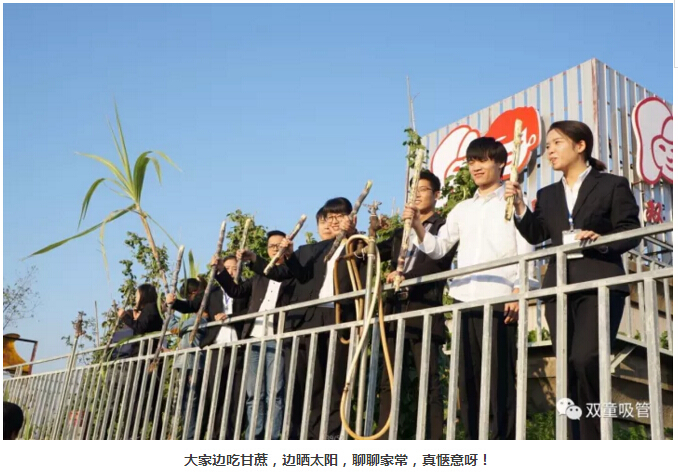 每逢甘蔗季,來(lái)“雙童”參觀的客人們也忍不住下到甘蔗地里親自收割甘蔗,品嘗品嘗“雙童”的果實(shí)!