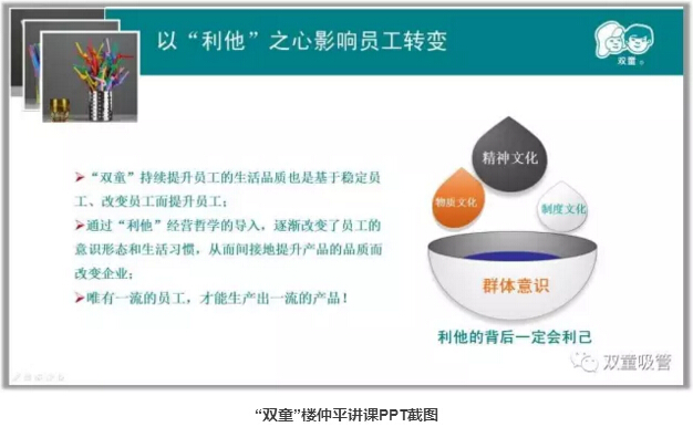 通過(guò)員工喜聞樂(lè)見(jiàn)的形式,灌輸企業(yè)價(jià)值觀,潤(rùn)物細(xì)無(wú)聲地將“雙童”的企業(yè)文化落地生根,有聲有色地在企業(yè)全員中開(kāi)展,并形成"雙童"獨(dú)特開(kāi)放、包容、快樂(lè)的企業(yè)文化氛圍,通過(guò)文化的作用是讓員工形成自律,從而全面提升員工整體素養(yǎng)!