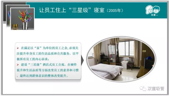 正巧從2006年開(kāi)始,“雙童”在建廠之初建設(shè)的雨水收集、中水回用等節(jié)能降耗設(shè)施以及創(chuàng)造一流硬件讓員工住三星級(jí)寢室、建設(shè)物業(yè)團(tuán)隊(duì)服務(wù)員工、倡導(dǎo)“家文化”解決核心員工家庭生活問(wèn)題等善待員工的經(jīng)營(yíng)理念受到了中央、省和市政府的高度關(guān)注,從而帶動(dòng)大量社會(huì)媒體到“雙童”采訪報(bào)道。