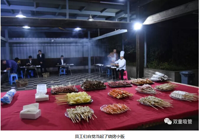 “雙童”董事長樓仲平、總經(jīng)理李二橋等管理層也來到自助燒烤晚宴現(xiàn)場和客戶們進行溝通交流。