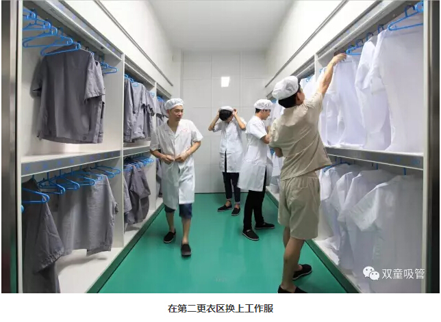 在“雙童”,每位員工在進(jìn)入車間前,都要按照規(guī)范進(jìn)行消毒防護(hù)措施,過(guò)五道門六道關(guān)卡才能進(jìn)入車間工作: