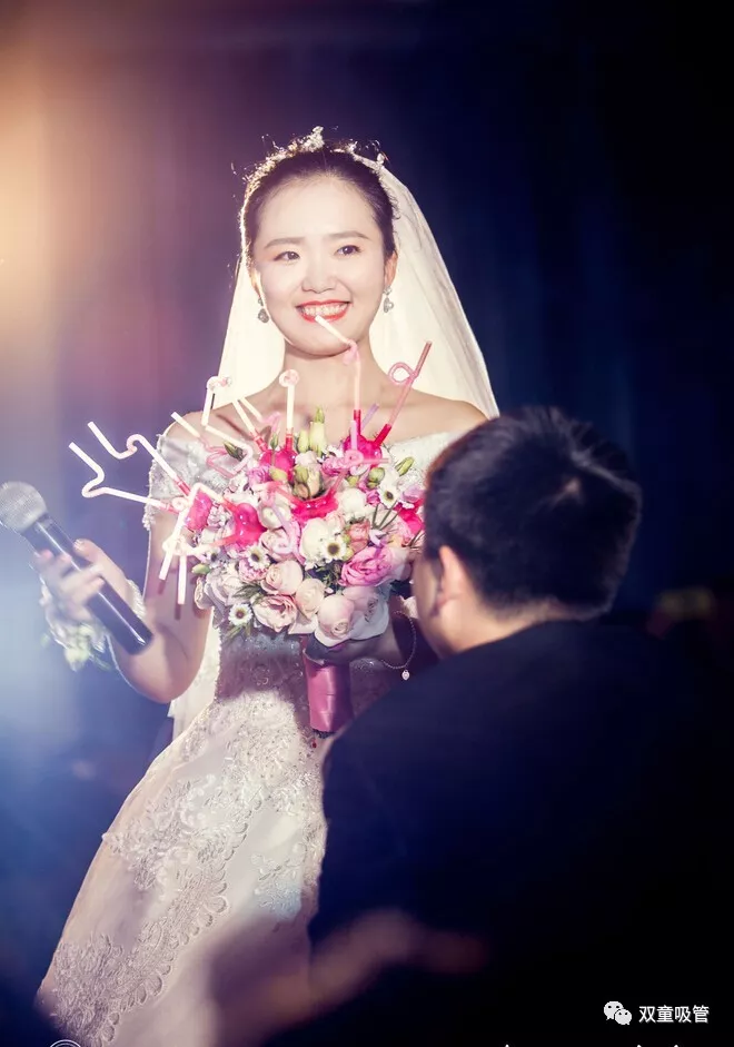 婚禮現(xiàn)場的亭子代表著新人的工作單位——“雙童吸管”