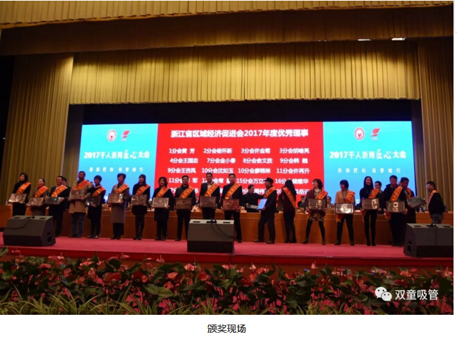 12月22日,由浙江省區(qū)域經(jīng)濟(jì)促進(jìn)會(huì)主辦的“2017千人浙商匠心大會(huì)”在浙江省人民大會(huì)堂隆重舉行!本次大會(huì)以“浙商匠心筑夢(mèng)前行”為主題,緊跟“十九大”精神為促進(jìn)會(huì)浙商筑夢(mèng)。“雙童”樓仲平也受邀出席了此次會(huì)議!