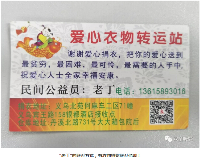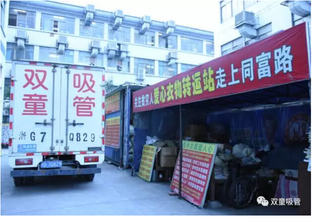 前幾天,吸管妞也將收拾好的衣物送至“義烏十大好人”老丁的衣物捐贈(zèng)處。由于衣物太多,我們用了“雙童”的廠車運(yùn)輸,順便也給我們自己做了宣傳,哈哈??!老丁表示:十分感謝“雙童”多年來堅(jiān)持舉辦暖冬活動(dòng),也希望有更多的人能夠參與到此項(xiàng)活動(dòng)中來!