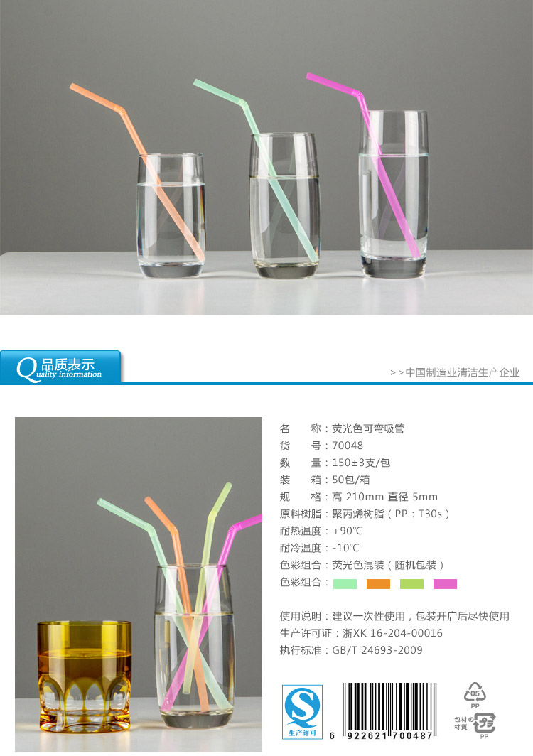 70048雙童150支熒光色家庭裝彎吸管