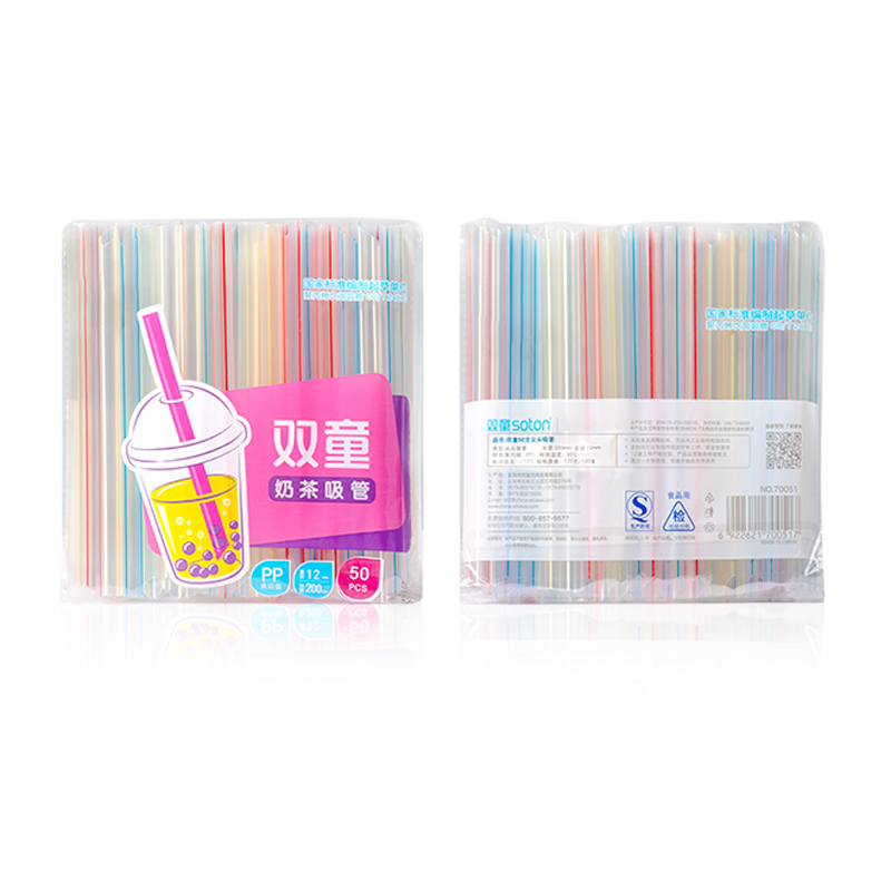 70051雙童100支透明彩條色珍珠奶茶吸管