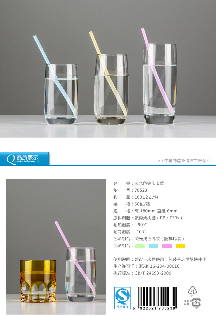 70523雙童100支彩色尖頭吸管